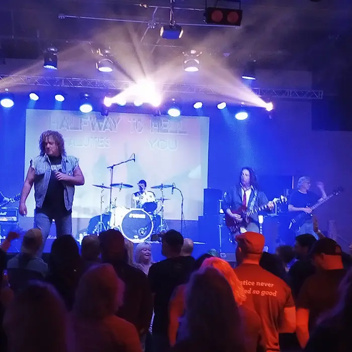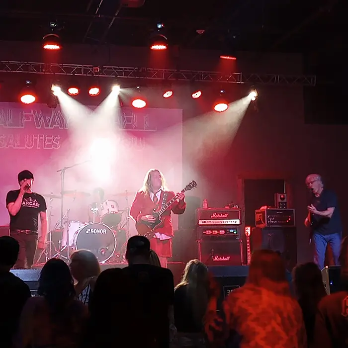 Striking thunder with monstrous riffs and gigantic hooks, AC/DC is synonymous with quintessential rock and roll music. There aren’t many other bands throughout the history of the genre who can claim to have made such a massive impact, and still endure decades on. This is the reason why any tribute band attempting to pay homage to these legendary rocker has fairly big shoes to fill. Thankfully, “Halfway To Hell” rose up to the challenge, not only perfectly recreating those magic songs, but also capturing the electricity that defines AC/DC’s music (and moniker!). Halfway To Hell Features Two singers to cover AC/DC completely. One vocalist who covers the Brian Johnson and one vocalist who covers the Bon Scott. Halfway To Hell provides a high energy AC/DC style Rock Show! Halfway To Hell was founded in 2013 by Forrest, who sings the Bon Scott has performed in bands with the current drummer from Judas Priest, (Scott Travis) and former member of Badlands and RacerX, Jeff Martin. Hailing from Wilkes Barre, Pennsylvania, “Halfway To Hell” acquired a solid reputation as a reliable, professional and timely tribute band. The group provides the thrills of an authentic rock show experience and bringing some of the most iconic tunes of the genre to life with world-class musicianship!